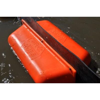 Each 50’ section is supplied with heavy duty Neoprene with nylon cloth inserted fabric with 12 pairs of rotationally molded, hi visibility orange, polyethylene foam filled floats which are secured to the fabric with 304 stainless steel fasteners. Sections are joined together utilizing heavy duty aluminum ASTM connectors.