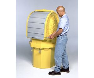 The only 1-drum, lockable outdoor containment unit available. This two-piece spill containment unit provides safe and secure outdoor storage for your 55-gallon drum. Simply use your forklift and/or drum handling equipment to lift and lower the drum into the bottom sump, then place the top portion over the drum where it locks in place onto the lower sump portion. Once assembled with the drum in place, access is quick and easy via the roll top door. The top Hard Top section does not need to be removed again unless the drum needs to be replaced.