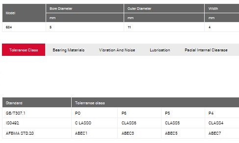The accuracy of ZXZC deep groove ball bearings (Mechanical Bearing 684) are divided into four grades of tolerances with national standard GB/T307. 1 which compared with the ISO and AFBMA standard.etc is in the following table.