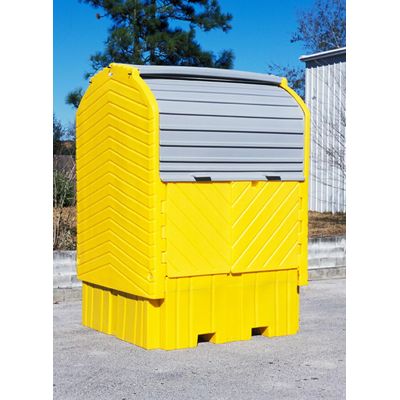 Comply with regulations while storing IBC tanks outdoors. The Ultra-IBC Hard Top Spill Pallet provides spill containment for IBCs, tanks and other large containers. The all-polyethylene roll top unit provides both protection from unauthorized access as well as sun, rain and the elements. Simply place your IBC or tank into the unit with your forklift or other equipment, close the doors and rest easy knowing that you are protected.