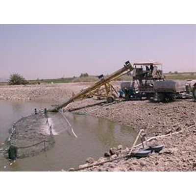 Harvesting Tilapia using screw elevator and automatic sorting table into transfer tanks. APT provides operational definitions for the required fish farming equipment and their detailed specifications. In addition, APT facilitates equipment procurement by preparing technical bids and analyzing quotation proposals from suppliers.
