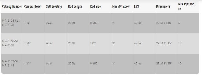 Available in three camera head sizes, 1.23”, 1.43" or 1.68”, self-leveling or straight view, with 200ft / 60m of push rod. Compatible with all Hathorn® command modules. Municipal grade North American built camera reels allow you to push farther and see better.