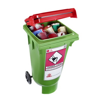 UN-BOXX® has a wide range of applications and can be used, among other things, for collection of materials (paint residues, waste, etc.), used cleaning rags, granulates and oil and chemical binders from workshop waste disposal.