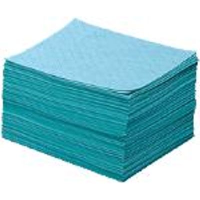 Ideal for wiping up smaller chemical spills. These pads and rolls will absorb all liquids from water based fluids to aggressive acids. Bonded for tensile strength. Absorb up to 25 times their weight in all liquids. Haz Mat Green color stands out as a potentially harmful liquid that spilled. Quick and easy to apply.