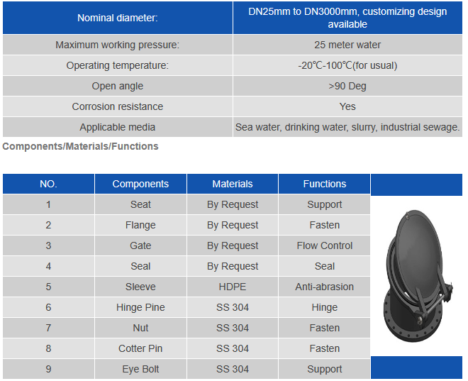 • No cracking pressure needed, low head loss, can be completely open to flood discharge