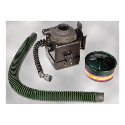 HDT’s Hood/Mask Ventilation Blower assembly supplies filtered air to a hood/mask assembly worn by personnel in contaminated environments. Compact system ideal for air crew, ground crew, first responders or HAZMAT teams. It provides clean, filtered, ventilated air for any situation where the NATO-standard C2A2 canister is used for protection, such as demisting of faceplates, ventilating hoods or face masks, or for any other applications requiring up to 4 CFM (6.8 m3/h) of filtered air. Mounting bracket can be supplied for permanent mounting in any application. Remote battery pack is also available. C2 canister, hose, and batteries are sold separately.
