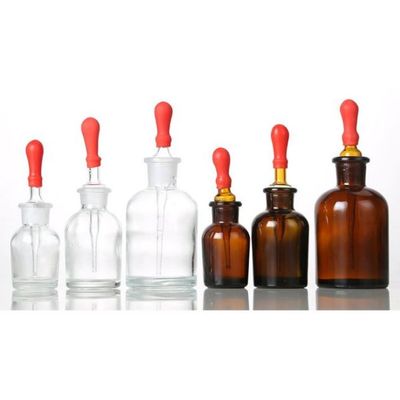 The glass dropper bottle is a bottle cap dropper, which includes a cap, dropper, and a squeeze tip, which is connected to the dropper.