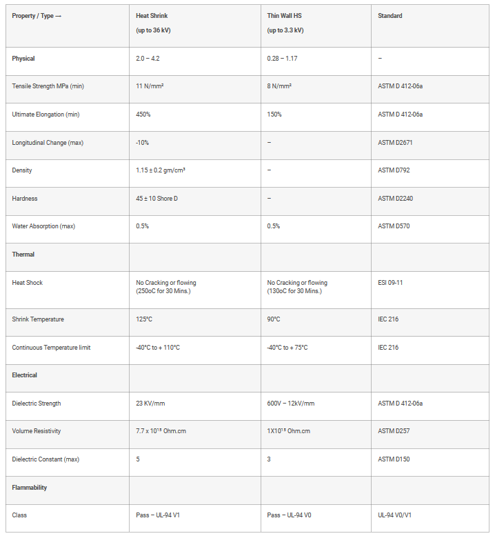 Material: Aluminium: EC, 6101. Copper: Cu-ETP. Insulation: Polyolefin Heat Shrink / PVC Cold Sleeve.