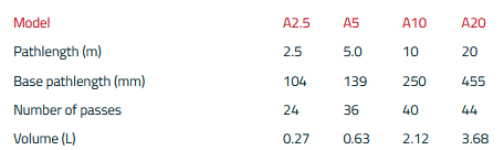 Better value long pathlength gas cell Atmos is our range of long pathlength gas cells for measuring the infrared spectra of trace gases and vapors. Available in fixed pathlengths of 2.5, 5.0, 10.0, 20.0 meters for maximum versatility. Each cell has been individually optimized for maximum optical throughput and signal-to-noise