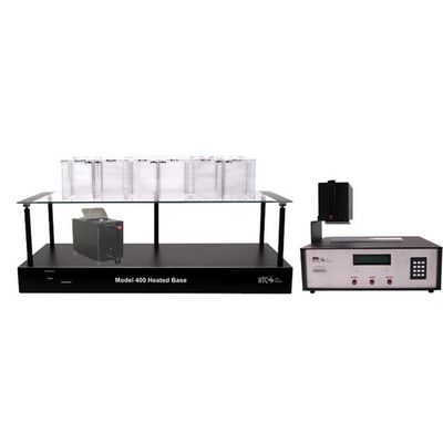 When an animal is placed on cold glass, its reaction time may be slower. This unique system offers a heated glass option that prevents the glass enclosure from acting as a heat sink, giving a more accurate reading. An optional tail temperature monitor can also be selected for use with the Tail Flick meter. This option actually preheats the tail before experimentation. Once the preset tail temperature is reached, the test and timer automatically begin. A glass stand is also available in two sizes for large group studies.