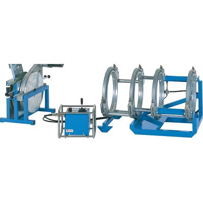 Are you looking for a heating element butt welding machine for the use on the construction site and in the trench for pipes and fittings from OD 200 up to OD 450? Then, the WIDOS 5100 is the correct machine for you. The WIDOS 5100 can be used to process pipes and fittings out of PE, PP, PA and PVDF from OD 200 up to OD 450. The WIDOS 5100 features a double clamping device with quick clamping on the fixed and on the movable side. These are guided by 2 shafts. There are 2 flexible hoses with quick-action couplings for the connection to the hydraulic control unit. The double clamping devices are screwed to the steel pipe frame. The outer fixed clamping device can be easily dismounted by removing 3 screws in order to weld at difficult accessible places, e.g. in trenches or at branches of T-pieces. The remaining unit of three rings can be removed from the base frame and used for repair work. The WIDOS 5100 is thus a 4-ring and a 3-ring machine in one device.