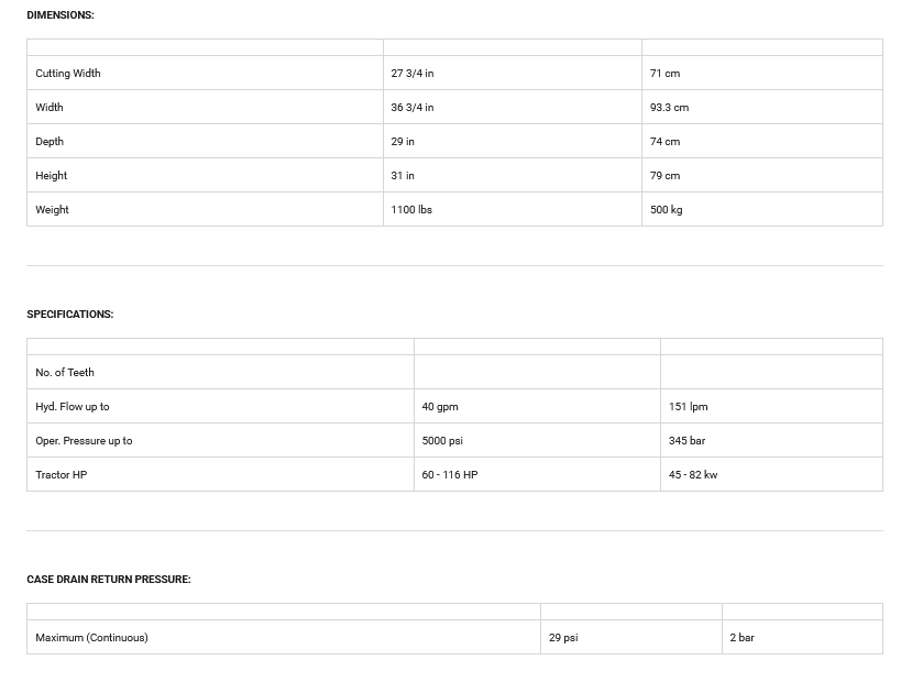 The only heavy-duty cutter-head on the market that weighs less than 1100 pounds and can handle hydraulic flows up to 40 gpm. Designed for mini & medium excavators.