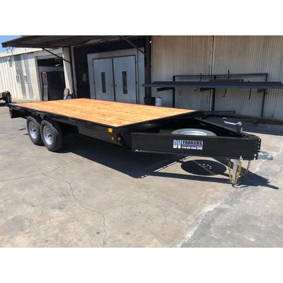 Dual 5200lb axles (6000 pound rated beams) with electric brakes on both axles, 12” I-Beam constriction, stake pockets and rub-rail, 102” wide deck, 8000 pound rated tongue jack, 235/80R16 tires, LED tail lights, 2 year warranty, NATM certified. Available Sizes: 102”x16, 102”x20.