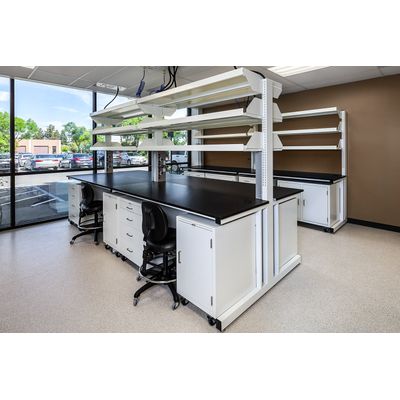 Heavy-gauge welded steel frame supports 3500+ lb. working capacity. Configurable, modular design supports future expansion. Integrated adjustable-height shelving system for flexibility. Multiple lengths, heights and depths available to meet your specifications. Available Service Hub system - offers numerous power, data and specialty gas services - can be tailored for your specific needs and pre-installed into the frame, resulting in a clean, uncompromised lab work center.