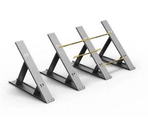 Punched metal collars located underneath the bottom beam, which effectively grip the underlying surface and generate sufficient friction to ensure self-anchorage against the ground.