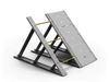 Connect the metal supports by attaching the link bars. Insert the link bars into the keyhole slots on the front beam of the support, allowing them to drop into place. The link bar design and the front beam slot ensure a locked connection without the need for additional parts or steps.