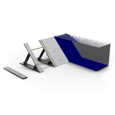 Our metal supports feature a collapsible and stackable design for user-friendliness and minimal storage volume. In upright position, the support beams transfer water pressure to the bottom beam, where metal collars increase anchoring force and stability through friction, ensuring a secure and reliable structure.