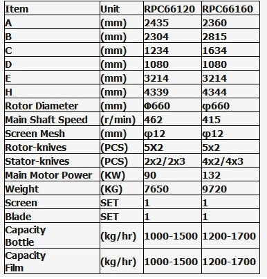 Heavy Duty RPC66120 - RPC66160 Granulators, suitable for crushing - granulating very large plastic products between capable of granulating 1000 - 1700 Kgs Hour depending on the materials. Welded by rigid steel structure, which are specifically designed to meet the needs to the difficult-crushing recycling materials, and suitable for crushing pipe, film, sheeting and large-size solid materials. The rigid welded steel structure is designed to withstand the most extreme grades of plastic materials and ensures consistent performance and long lasting service.
