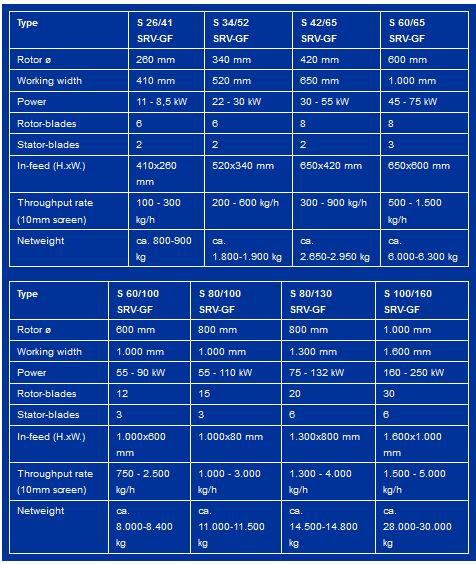 - throughput rate:60 - 4.500 kg/h (10mm screen)