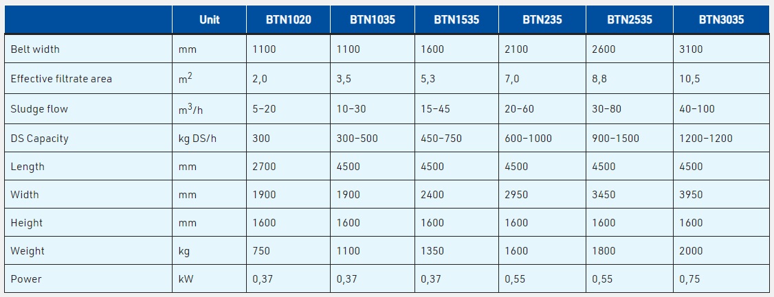 Dewa - Model BTN -Heavy Duty Gravity Belt Thickener