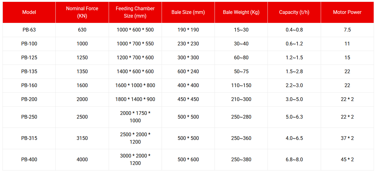 Different operations require different “firepower.” Below are the detailed specifications for our PAIBO baler series.