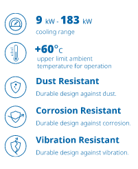 Thanks to its plug & play structure, it is very easy to install, commission and operate, and it is user friendly. Ambient temperature can work up to +60 degrees. It does not need any piping or ventilation ducts. It is unique in its class with its emergency cooling function, free cooling and similar features when the power supply is cut. Do you need to cool any area? Don`t you have any infrastructure? Connect it to your wall and run it, it`s that easy!