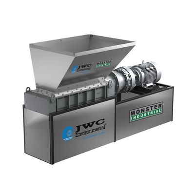- Dual-shafted, slow-speed, high-torque waste shredder with hardened steel cutters.