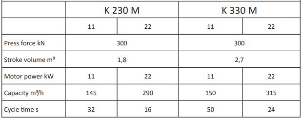 The model K compactor is available in five different designs with different engine sizes and stroke volumes. Regardless of the design, the machine is built to compress all possible materials. Common materials are cardboard, paper, plastic and household waste.