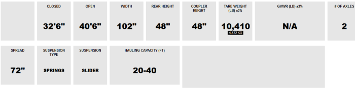 Max-Atlas heavy duty 32’ two (2) axles spring ride 12 pins container chassis with a sliding suspension. The container chassis is designed to carry one 20’, 2 x 20` empty and 40’ long ISO container. Meets all D.O.T. regulations and is applicable in Canada and the United States. ”Engineered to Perform”