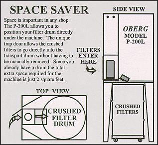 - Legs accommodate a 55 gallon drum directly under the machine to catch the crushed filters