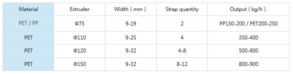 PET or PP straps can be produced with the same technology. It takes a few minutes to change line set-up from one to the other. Heavy duty equipment can be used for four, six and eight straps production.