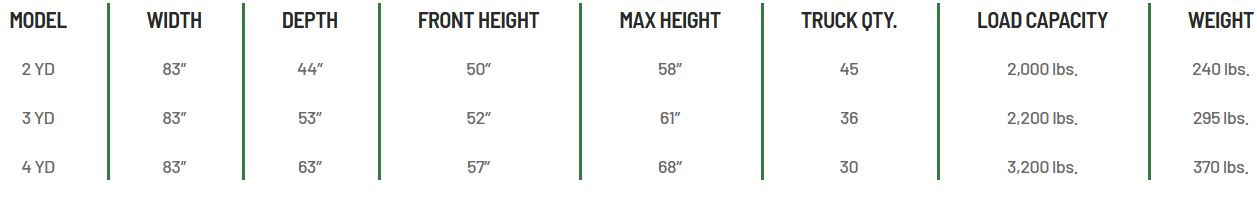 - Available in 2YD, 3YD, and 4YD sizes