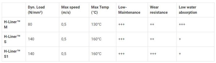H-Liner composite bushings have excellent friction properties and improved wear resistance without external lubrication even on high loads. H-Liner M are manufactured with an homogeneous woven polymer material, on the complete wall thickness. This product is completely remachinable and also available as flanged bushings, washers and slides. They are also widely used for when low water absorption or misalignement resistance are required. H-Liner S are manufactured from a high strength composite fiberglass backing completed with an woven liner inside. H-Liner S1 are made from high strength composite fiberglass backing and completed with an improved wear resistance liner.