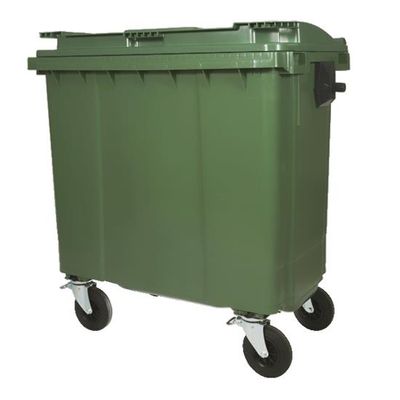 Technical specifications: Volume: 770lt. Material: HDPE, UV Stabilized. Wheels: 2 wheels 200mm with footbrake, 2 wheels 200mm without footbrake. Drain plug. Equipped with ID-Chip nest. Tested according to EN 840 2/5/6, RAL-GZ 951 & AfPS GS.