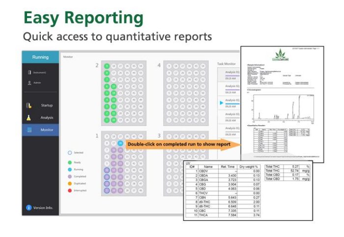 A complete turnkey HPLC analyzer for quantitative determination of cannabinoid content in hemp.