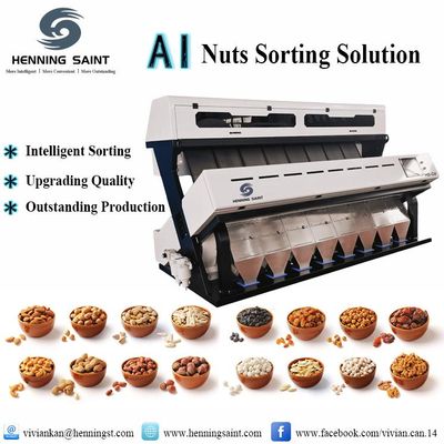 Henning Saint nut color sorter adopts industry-leading high-definition 54 million pixels high-speed scanning imaging for nuts color sorting, accurately identify the color and shape of nuts, provide "color sorting plus shape sorting" solutions for different materials, accurately identify mold, worm holes, broken and other defective products and quickly reject. It is suitable for color sorting of walnuts, cashew nuts, pistachios, pine nuts, melon seeds, peanuts and other nuts and fried materials.