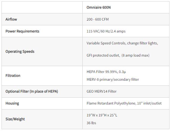 - Particulates removed with medical grade Hepa filter at 99.99% efficiency at 0.3 microns
