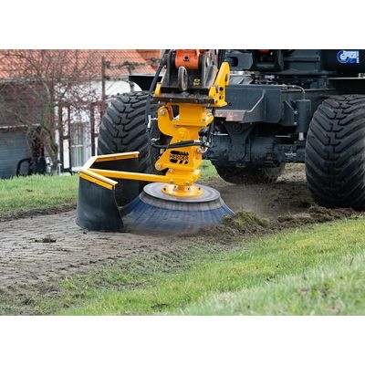 The Herder weed brush mechanically removes weeds from road verges and places that are difficult to reach. The weed brush consists of a frame driven by a hydraulic motor and a firm brush. By means of a Herder quick-fit connection the weed brushes can be connected to a Herder machine. The weeds are stripped from the pavement by the rotating brush. The weed brush is equipped with an adjustable cylinder mounted on the frame for setting the brush to the correct angle.