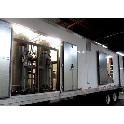- Nitrogen module – this module serves two purposes, one is to provide an inert nitrogen gas blanket over the chemical reaction and the second is to provide motive power to move the sodium dispersion around the system, either from the shipping containers or the onboard storage vessels, into the mixing tanks. The dispersion is not mechanically pumped at any time.