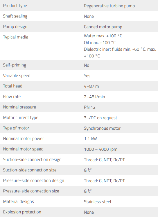 AY-2251-PM-SR – Regenerative turbine pump with speed-controlled canned motor.
