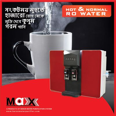 Heron Max Hot Normal Water Purifier is RO based water purifier. The diameter of the RO Purifier is 0.0001 micron, where only water can pass. Therefore, it is only the technology where can ensure 100% safe drinking water. Drinking RO water from Heron Max can eliminate many human diseases, for example, high blood pressure, fertility difficulties, brain damage, and anemic conditions particularly your lovely children. So, necessary of drinking RO water is essential. However, we know the four benefits of RO water, such as it is good for the environment, the benefit of health, best water taste, and save money. So, we should consider selecting such kind of purifier.Most popular related searches