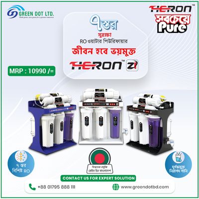 Discover the ultimate in clean, refreshing drinking water with the Heron ZI Water Purifier, exclusively distributed by Green Dot Limited. This is designed to meet your hydration needs, combining advanced technology and superior quality to ensure the health and well-being of your family. The Heron ZI RO Water Purifier stands at the forefront of purification technology, specifically crafted to cater to the needs of consumers in Bangladesh. Its sophisticated 7-stage filtration process guarantees that every drop of water is meticulously cleansed, remove impurities and contaminants to provide safe and refreshing drinking water. From removing sediments and chlorine to filtering out heavy metals and microbes, the Heron ZI RO Water Purifier ensures top-tier water purification. Its Reverse Osmosis (RO) technology acts as a powerful shield against a broad spectrum of pollutants, ensuring that the water you drink is free from harmful substances. Visit: https://greendotbd.com/product/heron-ziMost popular related searches