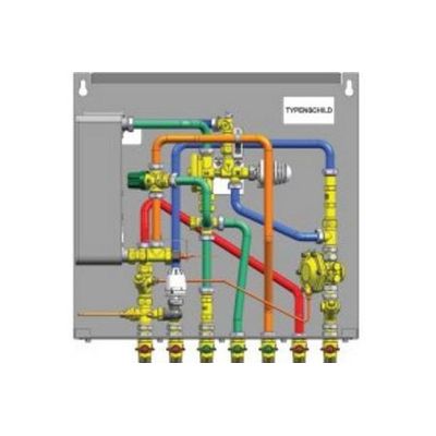 Compact substation for drinking water systems and radiator heating utilising a countercurrent heat exchanger made of Cu/ Ni brazed stainless steel. Central controller for hot water only operates as a pressure drop is detected when a hot tap is opened. Assembly is available in surfacemounting or flush-mounted versions. Pipe connection to an HIU is realised by means of a patented mounting system with pre-mounting unit. This unique installation system saves the installer the often complicated and time-consuming calibration and adjustment measures required on existing (pre-) installations.