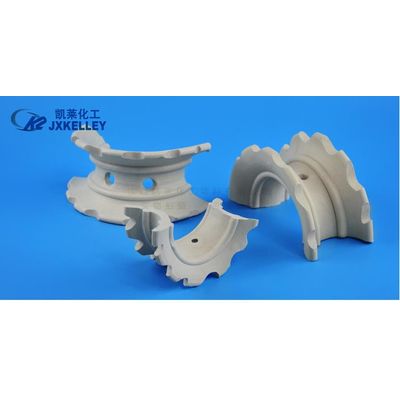 Different saddle ring is ceramic arc improved product of saddle ring, ceramic rectangular saddle ring changed with gear side arch appearance, the structure design of improved ceramic different specific surface area and porosity of saddle ring, ceramic saddle ring gap distribution evenly, greatly improving the distribution of the fluid, is better than ceramic raschig ring with the gap rate and lower pressure drop.