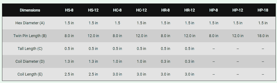 Falcon Hex Pins come in four variants, each with multiple length configurations. The HS-8 and HS-12 are designed for loose soils, think S for soft, sandy, or silty soils. The HC-8 and HC-12 are optimized for compact, cohesive and heavy clay soils. The HR-8 and HR-12 are suitable for hard, rocky soils, and the HP-8 and HP-12 are designed for quick installation of fabrics and mats.