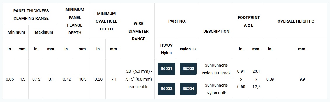 - Material: Heat Stable, UV Rated Nylon 6/6 or Nylon 12