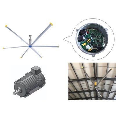 The controller integrated motor for HVSL fan is designed to simulate the soothing effect of natural wind, providing a gentle and stable breeze with customizable wind speeds ranging from 1m/s to 3m/s. With an impressive fan diameter of 7.3m, a single fan can effortlessly cover an ultra-large area of up to 1200 square meters.