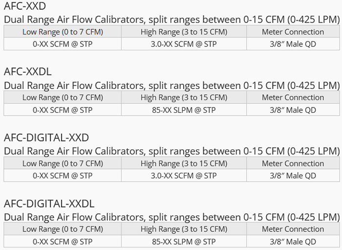 HI-Q - Model AFC-Dual-XX -Dual Range Air Flow Calibrators