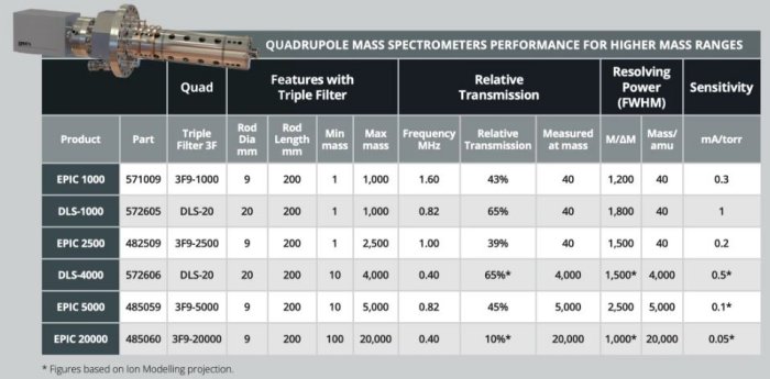 The Hiden cluster components include 9mm and 20mm pole diameter quadrupole assemblies with high-power RF operating at optimum frequency to accommodate high mass transmission required in cluster analysis.