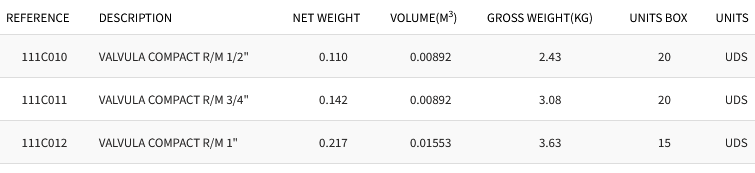 Net weight(Kg) 0.110. Volume(m3) 0.00892. Gross weight(Kg)2.43. Units Box 20.